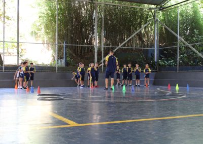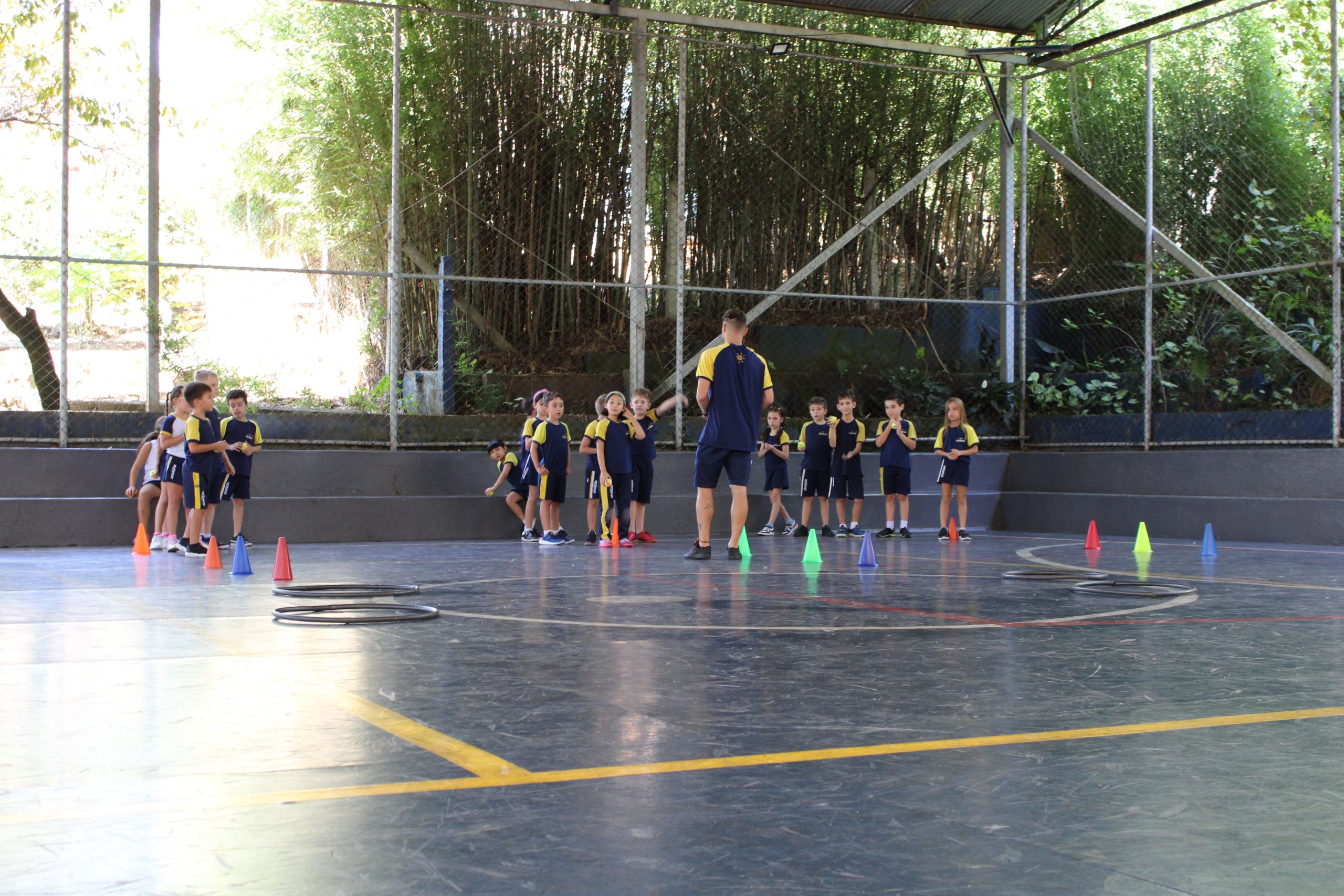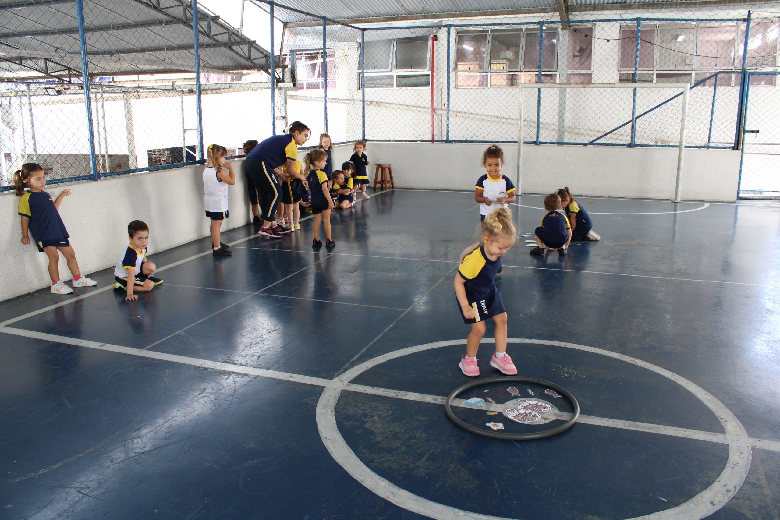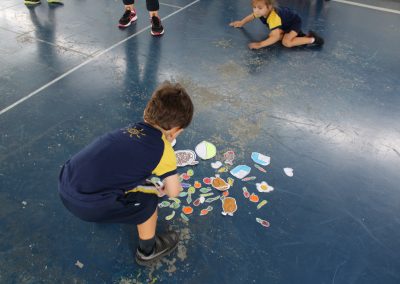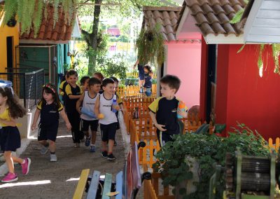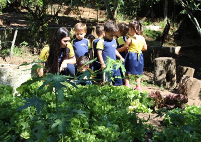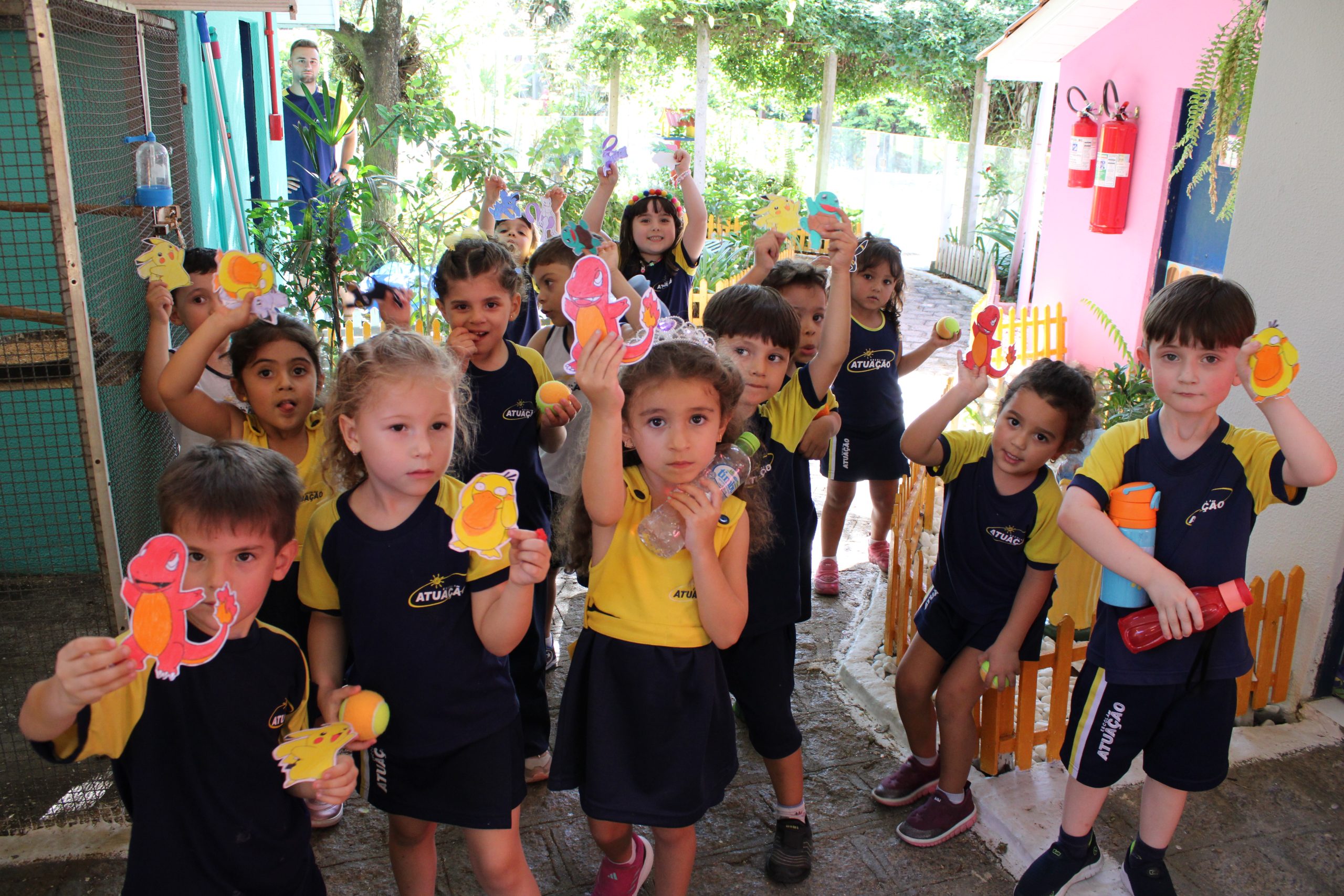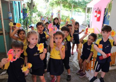A atividade consistiu na montagem de pratos coloridos com imagens de frutas e legumes, estimulando a curiosidade e o reconhecimento de alimentos saudáveis. Após a brincadeira, os professores explicaram a importância de uma alimentação equilibrada. Já as turmas do Infantil 4 e 5 participaram da atividade “Pokémon Go da Vida Real – A Grande Caça ao Tesouro”, inspirada no famoso jogo de celular.